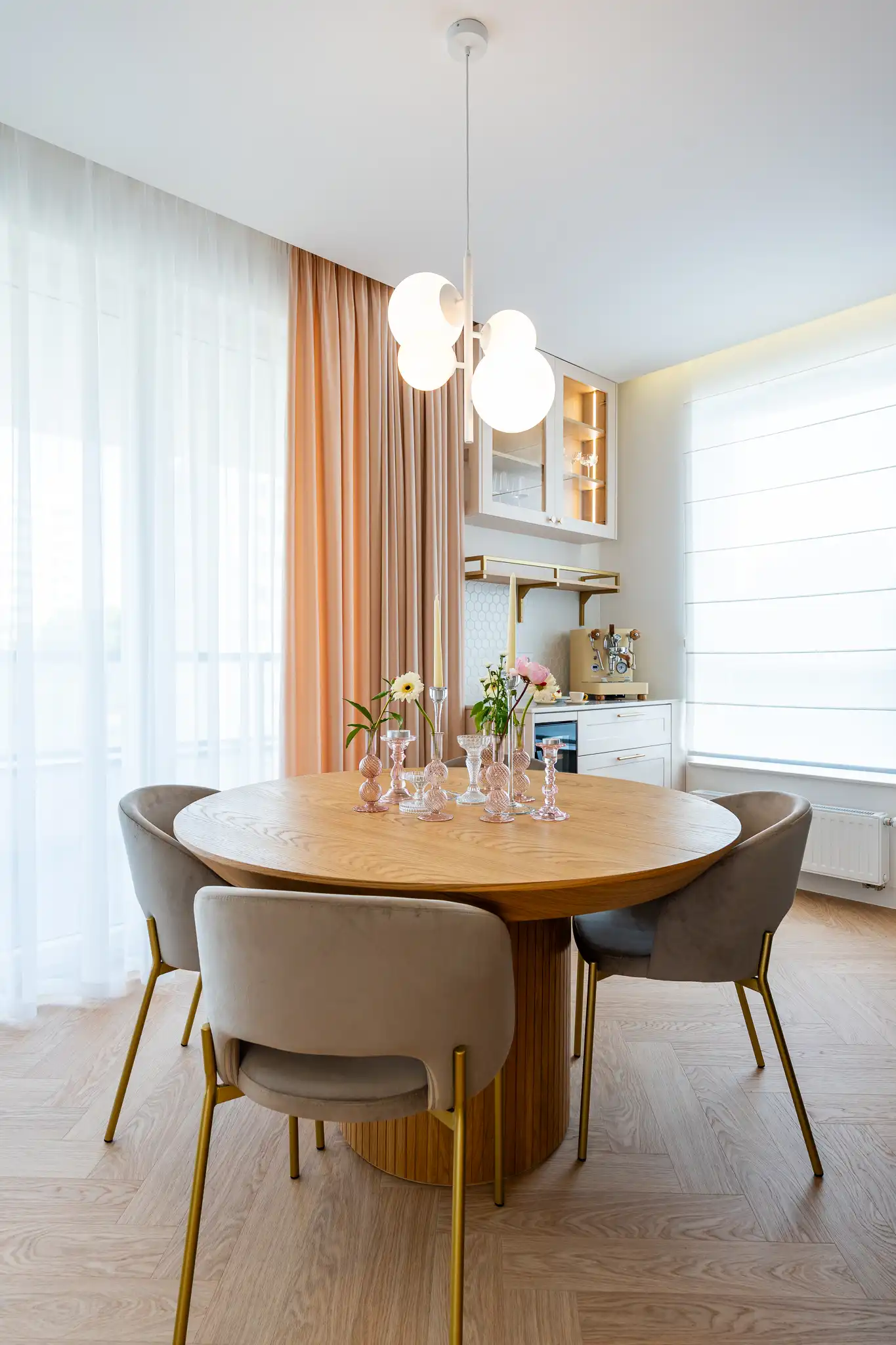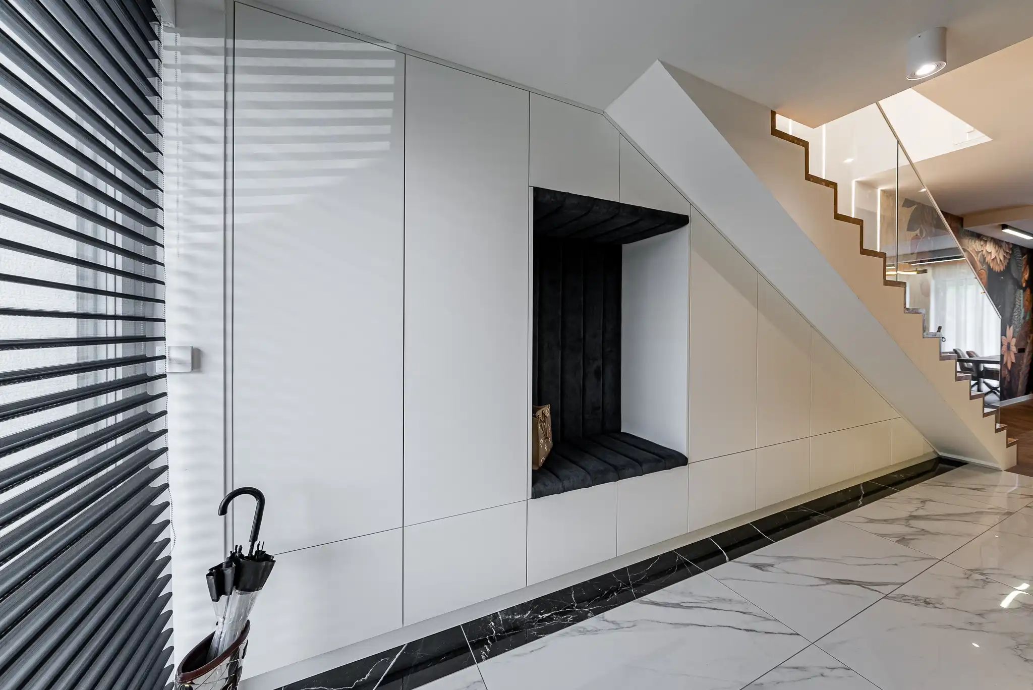 W dniu odbioru wnętrze jest gotowe do zamieszkania – możesz wejść, odłożyć klucze i zawiesić kapelusz. Wszystko jest na swoim miejscu.